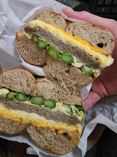 The variety of bagels available, such as the everything bagel, is a favorite choice for many visitors. These bagels are known for their light, soft texture and perfectly balanced flavors, making them a fantastic start to your day. The cafe also offers tasty breakfast sandwiches, including options like croissants filled with ham and bacon. Though the line may sometimes be long, the speed of service ensures that you’ll have your meal without much wait, making it a convenient stop for a quick yet satisfying meal.